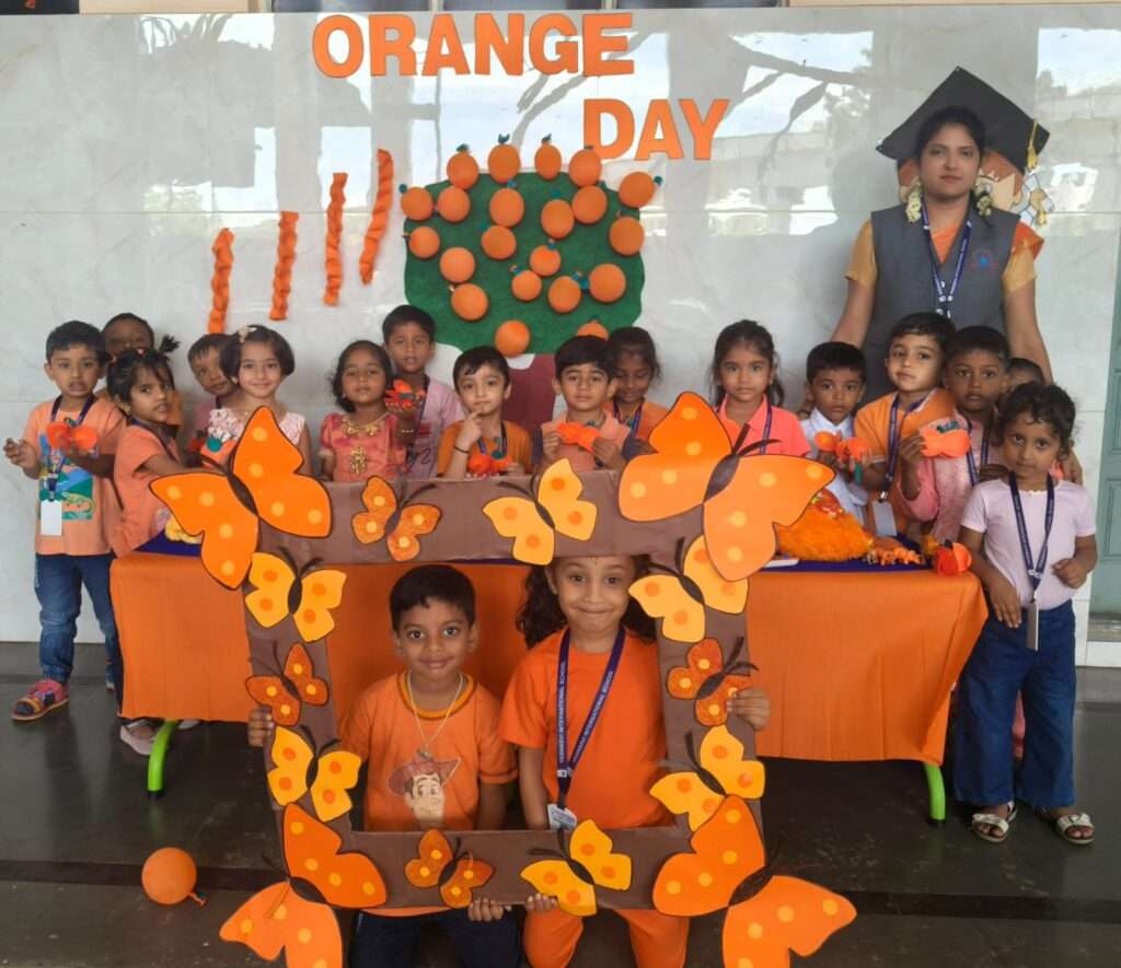 Today We Celebrate the Colour of Creativity- OrangeBy Yashasvi school / November 1, 2025 “Our Nursery is glowing bright with Orange delight!” Little hands, big smiles, & lots of Orange!